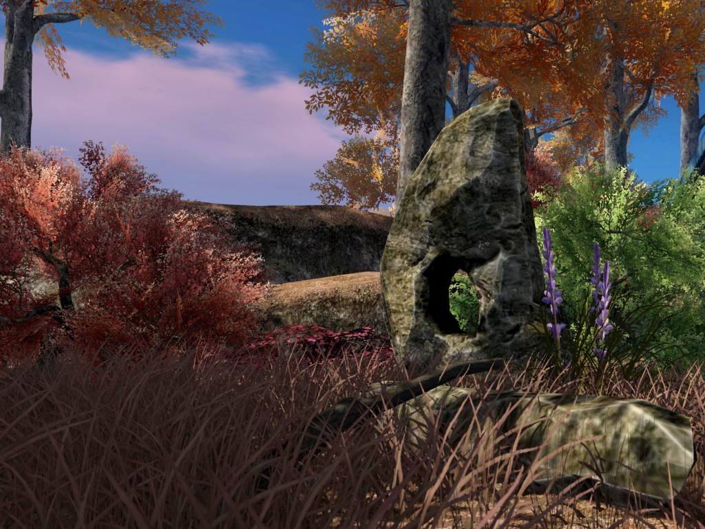 Today my journey took me to the beautiful town of Autumnium. The vibrant hues of red, brown and orange, combined with a touch of green, welcomed me warmly. A couple of elegant statues guard the town, and many large boulders stand proudly, daring a visitor to try to push them over.