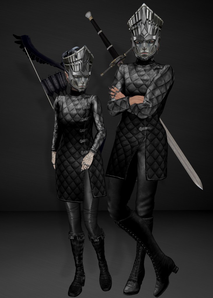 Today me and Ilyan are wearing almost identical outfits, we’re being guards, afterall. Our tunic is from Hotdog and it has both male and female version for various bodies. The white version is the RFL item, but we picked the black one, cause it went better with our look. The mask is from [KROVA], it comes in gold and silver. I’m wearing a tattoo from -Endless Pain Tattoos-, but I need to make another picture of it, because in this one you can only see the hands in the clean close up, and it’s a neat tattoo. My bow’s from CKit Falconry, it comes in animesh and normal version. Lastly, Ilyan’s sword is from [REQUISITION]. Many of the items are also RFL versions.