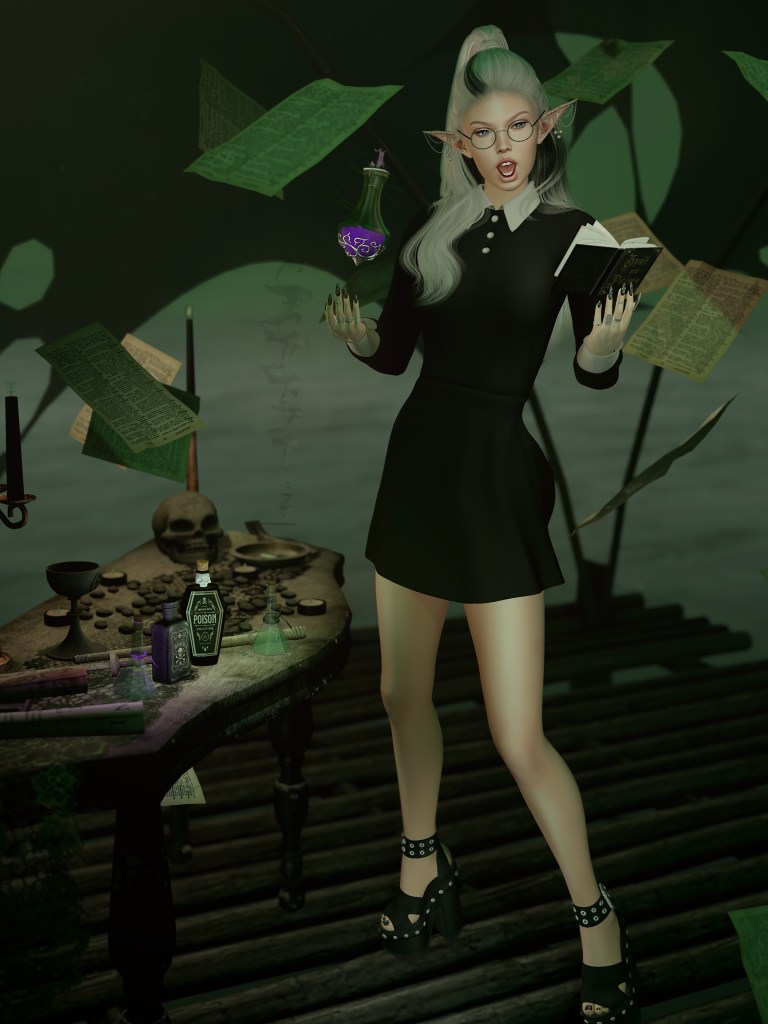 I used to watch the Magicians while it was still on tv, and when I was making today’s look, I got strong Alice Quinn vibes. Alice wore short skirts and had glasses, so that’s probably why. Alice was also my fave female character in the show. She may have looked nerdy, but she was the smartest of the group and she kicked ass. So, here’s my version of Alice Quinn enchanting a potion.